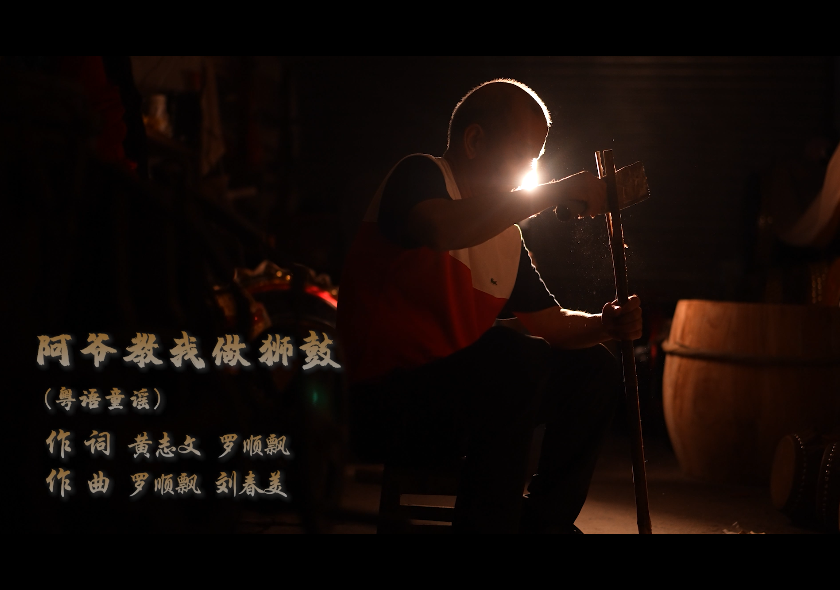 由黄志文、罗顺飘作词、罗顺飘、刘春美作曲的粤语童谣《阿爷教我做狮鼓》,通过爷孙互动传承的温情叙事,让百年非遗技艺焕发新生机。